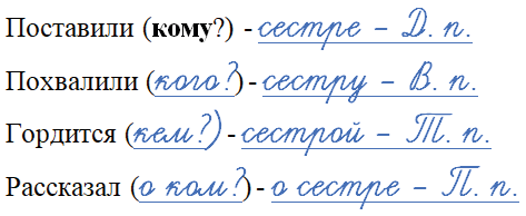 Моя сестра учится в институте. Рано утром сестры уже нет дома. Она ушла сдавать экзамены. Сестре поставили пятёрки по всем предметам. В институте мою сестру похвалили. Вся наша семья гордится сестрой. О своей сестре я рассказал друзьям из класса.