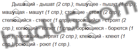 Тяжело дыш..щий человек; пыш..щее здоровьем; мельн..ца, маш..щая крыльями; недорого сто..щие книги; стел..щийся туман; стро..щийся дом; кол..щий предмет; бор..щиеся спортсмены; терп..щий боль; кле..щий бумагу; ро..щий канаву человек.