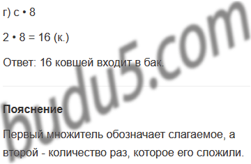 г) В бидон входит с ковшей воды, а в бак - 8 бидонов. Сколько ковшей воды входит в бак?