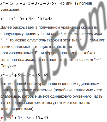 Сторона квадрата на 3 см меньше одной из сторон прямоугольника и на 5 см больше его другой стороны. Найдите сторону квадрата, если его площадь на 45 см2 больше площади данного прямоугольника.