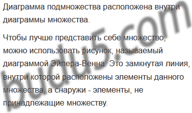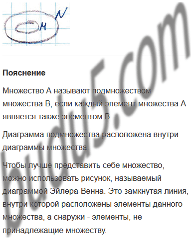 Задание № 6. Придумай примеры множества и его подмножества. Нарисуй диаграмму Эйлера-Венна.