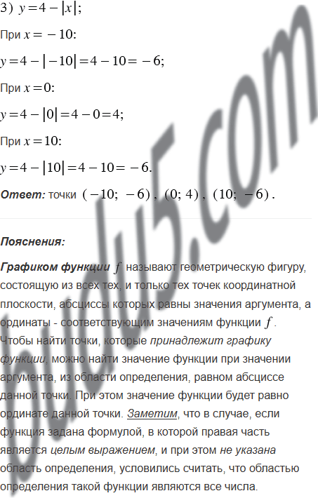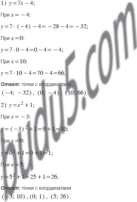 Назовите координаты нескольких точек, принадлежащих графику функции: