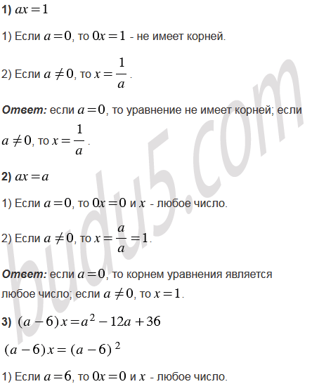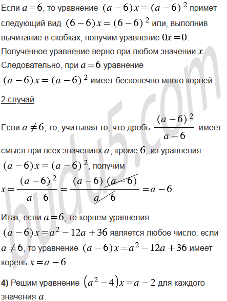 Для каждого значения решите уравнение: