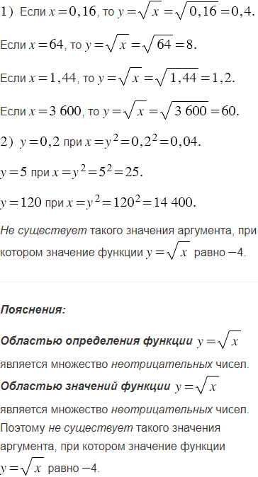 1) Чему равно значение функции, если значение аргумента равно: 0,16; 64; 1,44; 3600?