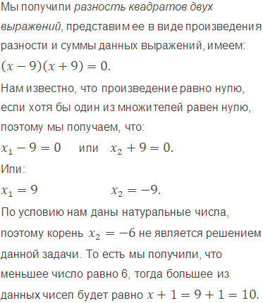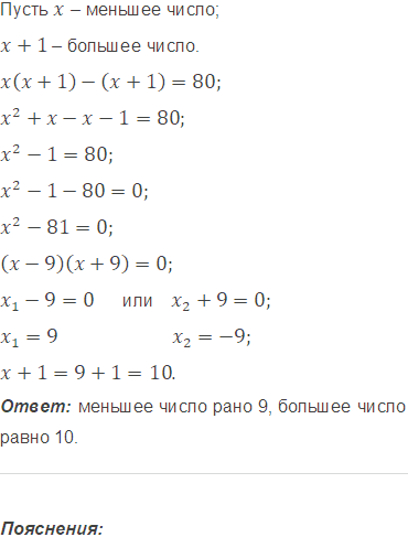 Найдите два последовательных натуральных числа, произведение которых на 80 больше большего из них.