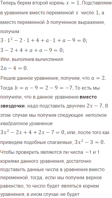 , чтобы получилось неполное квадратное уравнение, корнями которого являются числа: