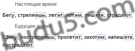 Напишите по шесть глаголов в настоящем и будущем в разных лицах. Выделите личные окончания.