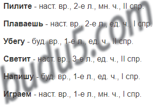 Письменно выполните разбор глаголов пилите, плаваешь, убегу, светит, напишу, играем: укажите время, лицо, число, спряжение.